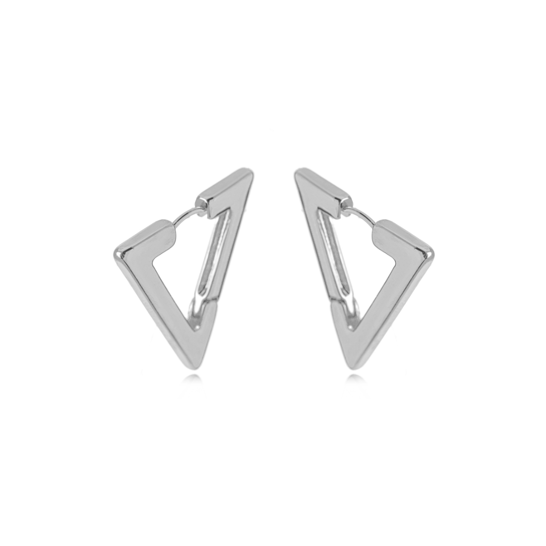Geometria que encanta, brilho que conquista. O brinco Trina é uma releitura moderna da clássica argolinha, com formato triangular e acabamento em prata que reflete leveza e personalidade. Minimalista e cheio de atitude, é perfeito para quem ama acessórios com design diferenciado e toque contemporâneo.